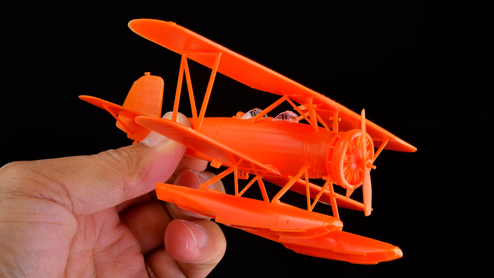 そんなこんなで1時間ほどで完成! 組む前からちょっと気になっていた複葉機の上下の翼の接合も、問題なくスムーズに行えました。鮮やかなオレンジ色、複葉機のノスタルジー感、そして足元がオシャレになるフロートと、かっこいいの3要素が見事に融合した九三式水上中間練習機のプラモデルは、確実にあなたの週末を盛り上げてくれます。このままお部屋に飾っても存在感を放つ、見事なプラモデルをぜひあなたのお部屋にお出迎えしてください。それでは!