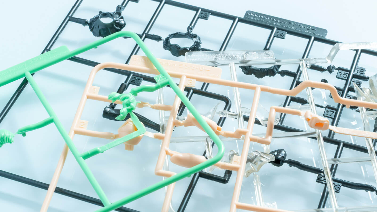ランカ・リーはえも言われぬダークなメタリックグリーンを基調とした衣装で、こちらもスキントーンと髪色がアイテム全体の調和を意識した色調になっていて成形色を決めた開発マンのコダワリがヤバい。シェリル、ランカともに透明のパーツには薄くパールゴールドを思わせる顔料を混ぜ込むことにより、塗装ではどうしても表現しづらい反射を楽しめます。プラスチックの色で表現できることの幅を目一杯使った商品なんだな。